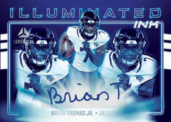 Among the other signature themes in 2025 Luminance Football are Autograph Jerseys, Illuminated Ink and Portrait Signatures.