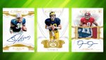 Base Gala inserts prominently feature a player’s jersey number, along with a pair of photos (one being a zoomed-in version of the other). In the debut basketball version of the product, the Gala cards were numbered to /8, but there is no information on the football production figure yet.