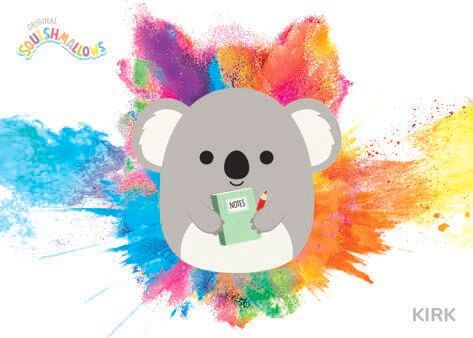 Color Blast – the long-running case-hit sports inserts – give Squishmallows some extra color. These horizontal cards have an exploding rainbow of color bursting behind the characters.