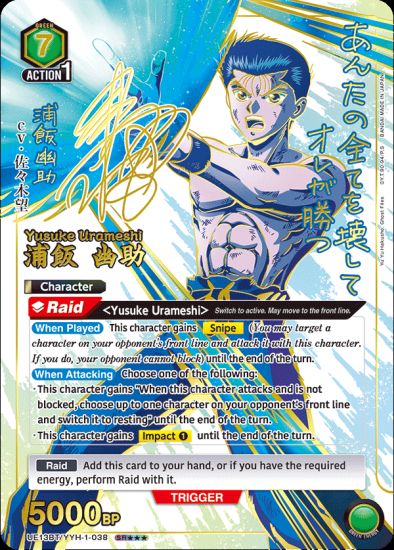UE13BTYYH1AP01 Action Point (Yusuke Urameshi) UE13BTYYH1AP02 Action Point (Kazuma and Yukina) UE13BTYYH1AP03 Action Point (Kurama and Youko) UE13BTYYH1AP04 Action Point (Hiei) UE13BTYYH1AP05 Action Point (Youko Kurama) UE13BTYYH1AP06 Action Point (Koenma) UE13BTYYH1AP07 Action Point (Younger Toguro) UE13BTYYH1AP08 Action Point (Full Cast) UE13BTYYH1AP01 Action Point (Yusuke Urameshi) FOIL UE13BTYYH1AP02 Action Point (Kazuma and Yukina) FOIL UE13BTYYH1AP03 Action Point (Kurama and Youko) FOIL UE13BTYYH1AP04 Action Point (Hiei) FOIL UE13BTYYH1AP05 Action Point (Youko Kurama) FOIL UE13BTYYH1AP06 Action Point (Koenma) FOIL UE13BTYYH1AP07 Action Point (Younger Toguro) FOIL UE13BTYYH1AP08 Action Point (Full Cast) FOIL