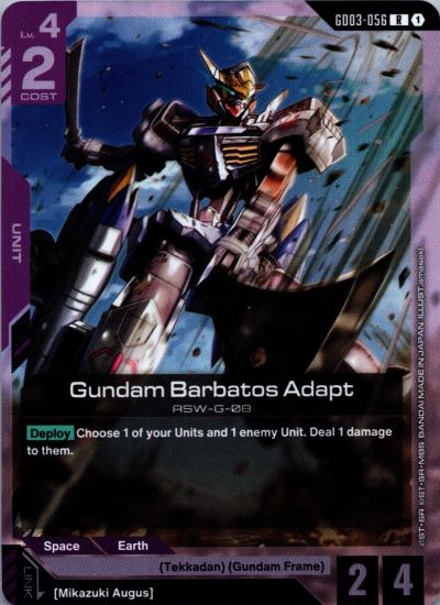 R020 Resource C+ R020 Resource C R021 Resource C+ R021 Resource C R022 Resource C+ R022 Resource C R023 Resource C+ R023 Resource C R024 Resource C+ R024 Resource C R025 Resource C+ R025 Resource C++ R025 Resource C R026 Resource C+ R026 Resource C R027 Resource C+ R027 Resource C R028 Resource C+ R028 Resource C R029 Resource C+ R029 Resource C+ T013 Hy-Gogg (T-013) C T014 Ad Balloon C T015 CGS Mobile Worker C T016 Graze Custom C T017 Gundam Barbatos 4th Form C T018 Red Gundam (T-018) C T019 GQuuuuuuX (Omega Psycommu) (T-019) C T020 GFreD (T-020) GD01100 A Show of Resolve SP GD01107 First Contact SP GD01111 Battle of Aces SP GD01118 Overflowing Affection SP GD03001 Gundam NT-1 LR+ GD03001 Gundam NT-1 LR GD03002 The-O LR+ GD03002 The-O R GD03003 Messala R+ GD03003 Messala R GD03004 Hambrabi R GD03005 Kshatriya Besserung R GD03006 Penelope (Middle Form) UC GD03007 Gundam NT-1 Full Armor UC GD03008 Bolinoak Sammahn UC GD03009 Palace Athene UC GD03010 Full Armor Unicorn Gundam (Destroy Mode) U+ GD03010 Full Armor Unicorn Gundam (Destroy Mode) C GD03011 GM Sniper II C GD03012 Messala (MA Mode) C GD03013 Hizack C GD03014 Hizack Custom C GD03015 Baund Doc C GD03016 Full Armor Unicorn Gundam (Unicorn Mode) LR GD03017 Kampfer LR GD03017 Kampfer LR++ GD03017 Kampfer LR+ GD03018 Altron Gundam LR+ GD03018 Altron Gundam LR GD03019 Gundam AGE-2 Normal LR+ GD03019 Gundam AGE-2 Normal R GD03020 Zaku II FZ R+ GD03020 Zaku II FZ R GD03021 Gundam Deathscythe Hell R GD03022 Gundam Kyrios R GD03022 Gundam Kyrios R GD03023 G-Bouncer UC GD03024 Hy-Gogg UC GD03025 Gundam Sandrock Custom UC GD03026 Gundam Dynames C GD03027 Z’Gok E C GD03028 Auda’s Maganac C GD03029 Gundam Heavyarms Custom C GD03030 Gundam Kyrios (Tail Unit Flight Mode) C GD03031 Gundam AGE-1 Flat C GD03032 Zaku (Four Snake Eyes’) YETI LR GD03033 Providence Gundam LR+ GD03033 Providence Gundam LR GD03034 GQuuuuuuX (Omega Psycommu) LR+ GD03034 GQuuuuuuX (Omega Psycommu) LR GD03035 GFreD LR+ GD03035 GFreD LR+ GD03035 GFreD R GD03036 Xi Gundam (Flight Form) R+ GD03036 Xi Gundam (Flight Form) R GD03037 Bertigo R+ GD03037 Bertigo R GD03038 GuAIZ (Commander Type) R GD03039 Red Gundam UC GD03040 Gundam Virsago & Gundam Ashtaron UC GD03041 Patulia UC GD03042 Duel Gundam (Assault Shroud) (GD03-042) C GD03043 Messer Type-F02 C GD03044 Daughtress Flyer C GD03045 Balient C GD03046 CGUE C GD03047 DINN (Commander Type) C GD03048 GFreD (GD03-048) LR GD03049 Gundam Exia (Trans-Am) LR+ GD03049 Gundam Exia (Trans-Am) LR GD03050 Gundam Barbatos Lupus LR+ GD03050 Gundam Barbatos Lupus R GD03051 Gundam X Divider R GD03052 Gundam Virtue R+ GD03052 Gundam Virtue R GD03053 Gundam Gusion Rebake Full City R+ GD03053 Gundam Gusion Rebake Full City R GD03054 Zeydra R GD03055 Gundam Hajiroboshi (2nd Form) R GD03056 Gundam Barbatos Adapt UC GD03057 GN Armor (Type-E) UC GD03058 Farsia UC GD03059 Zedas R UC GD03060 CGS Mobile Worker (Commander Type) UC GD03061 Gundam Barbatos 6th Form C GD03062 GX-Bit C GD03063 0 Gundam C GD03064 Defurse C GD03065 Zedas M C GD03066 Gundam Barbatos 5th Form (Ground Type) C GD03067 Rouei C GD03068 Gundam Hajiroboshi LR GD03069 Graham’s Union Flag Custom LR+ GD03069 Graham’s Union Flag Custom LR GD03070 Freedom Gundam (GD03-070) LR+ GD03070 Freedom Gundam (GD03-070) R GD03071 Z Gundam (Biosensor) R+ GD03071 Z Gundam (Biosensor) R GD03072 Aile Strike Gundam R GD03073 Graze Ein R+ GD03073 Graze Ein R GD03074 Tieren Taozi UC GD03075 Super Gundam UC GD03076 Freedom Gundam (Meteor) UC GD03077 Justice Gundam (METEOR) UC GD03078 Tieren High Mobility Type C GD03079 G-Defenser C GD03080 Gundam Kimaris Trooper (Trooper Mode) C GD03081 AEU Enact Demonstration Color C GD03082 Union Flag C GD03083 AEU Hellion R GD03084 Paptimus Scirocco R+ GD03084 Paptimus Scirocco UC GD03085 Christina Mackenzie C GD03086 Yazan Gable C GD03087 Sarah Zabiarov R GD03088 Asemu Asuno UC GD03088 Asemu Asuno R+ GD03089 Bernard Wiseman C GD03090 Mikhail Kaminsky R GD03091 Rau Le Creuset R+ GD03091 Rau Le Creuset UC GD03092 Nyaan C GD03093 Carris Nautilus R GD03094 Zeheart Galette R+ GD03094 Zeheart Galette UC GD03095 Azee Gurumin C GD03096 Jamil Neate C GD03097 Wistario Afam R GD03098 Graham Aker R+ GD03098 Graham Aker UC GD03099 Emma Sheen C GD03100 Soma Peries R GD03101 A Healthy Curiosity R+ GD03101 A Healthy Curiosity C GD03102 Privileged Position UC GD03103 Field Directive UC GD03104 Reccoa’s Shadow R GD03105 Bridge Crew R+ GD03105 Bridge Crew UC GD03106 M.A.V. Tactics UC GD03107 Over the River and Through the Woods C GD03108 How Many Miles to the Battlefield? R GD03109 Improved Technique R+ GD03109 Improved Technique UC GD03110 Eliminate Target UC GD03111 Infiltrator Present C GD03112 Warped Intent C GD03113 Human Karma R GD03114 Look of Determination R+ GD03114 Look of Determination UC GD03115 Distant Reunion C GD03116 Towards Destiny C GD03117 Orga’s Order R GD03118 Awakened Potential R+ GD03118 Awakened Potential UC GD03119 Awkward Approach UC GD03120 Immortal Colasour C GD03121 Unheralded Attack C GD03122 Veteran Tactics R GD03123 Jupitris C GD03124 Ribo Colony UC GD03125 Peacemillion C GD03126 Cyclops Team UC GD03127 Jachin Due C GD03128 Doritea UC GD03129 Hotarubi C GD03130 Downes R GD03131 Eternal C GD03132 Radish C ST05010 Mikazuki Augus C+ ST05013 With Iron and Blood C+ ST05014 Fatal Strike C