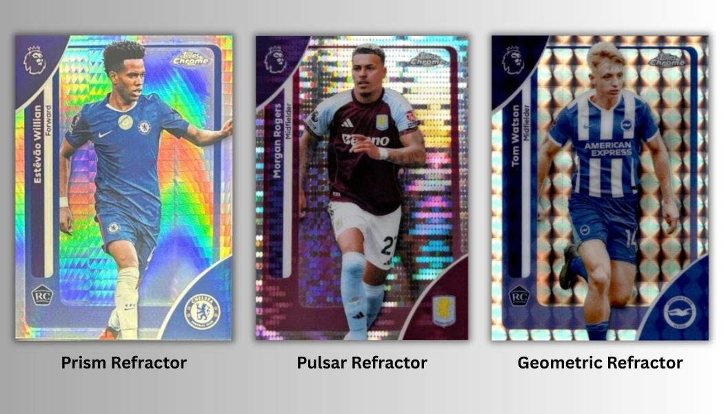 The 2026 Topps Chrome Premier League set has dozens of parallels. Some parallel concepts are easy to discern by the serial-numbering and colored borders, but if you’ve never seen a Prism Refractor or Pulsar Refractor card before, you may ask yourself: “What am I looking at here?”