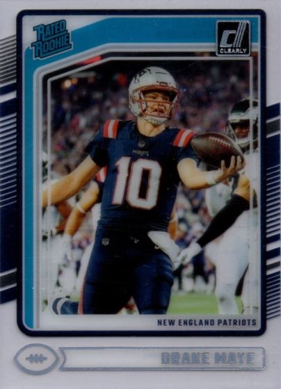The Donruss flagship set is one of the most popular among collectors for its comprehensive look at a new season. Panini gives it some upgrades throughout the year, including an acetate finish in Clearly Donruss. Maye’s Rated Rookies card can also be found in more than a dozen parallel colors.