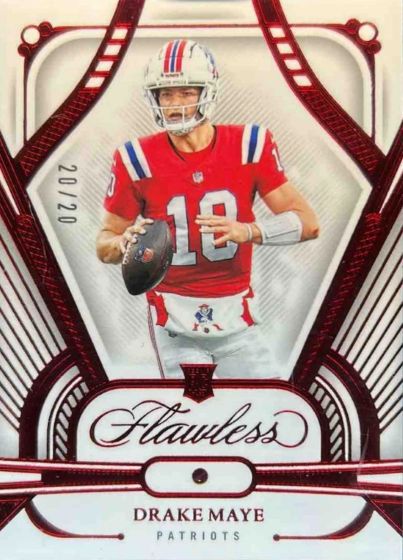 Panini’s Flawless is always a popular stop among the high-end crowd because even the base cards are embedded with gemstones. While Maye does not have any autographs in the product, his base rookie cards shine with a red ruby and a limited production run of only /20.