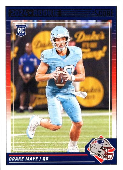 Kicking off the new football card trading calendar, Score offers collectors the first NFL rookie cards of top draft picks. Maye wears his North Carolina uniform on the card, which is simplistic and designed for collectors on any budget.