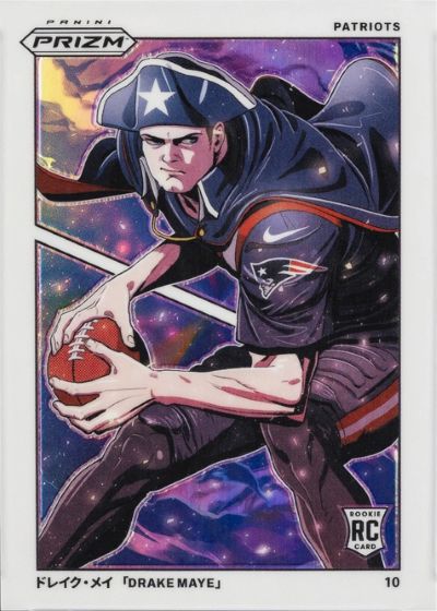 Depicting players in the popular Japanese illustration style, Panini Prizm Manga inserts have become cherished pieces for collectors. Maye made his debut appearance wearing a revolution-style hat and cape as a future leader of the Patriots.