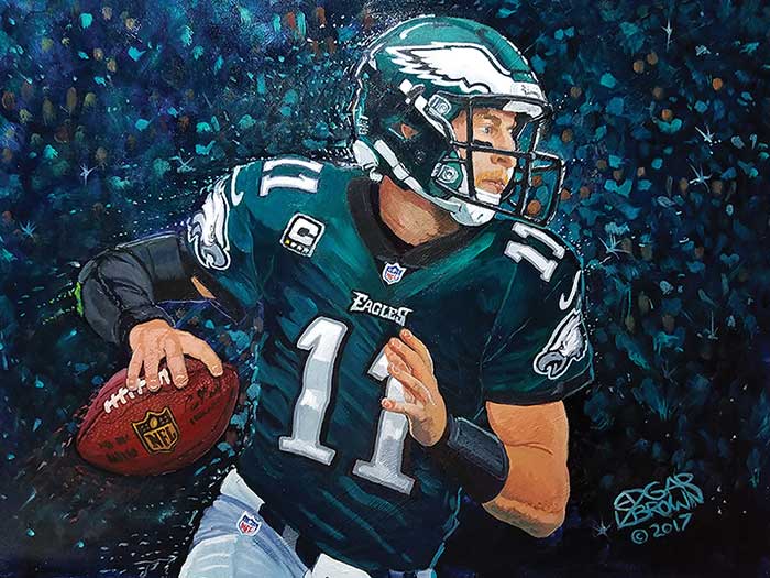 These days, Edgar has been commissioned by more than 100 pro athletes and his artwork was on display at NFL Honors Super Bowl 50, while several of his football works have been published into limited edition prints licensed by the NFL and the NFLPA through the Deacon Jones Foundation art initiative.