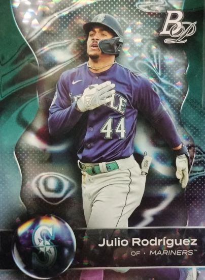 Pictured: 2023 Bowman Platinum #25 Julio Rodriguez Ice Foil