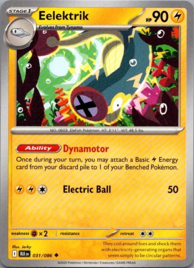 Eelektrik’s Dynamotor Ability allows you to attach a Basic Lightning Energy from your discard pile to a Benched Pokémon. This combos well with Mega Dragonite ex’s Sky Transport Ability, which lets you switch your Active Pokémon with one of your Benched Pokémon once per turn. So, whenever you want to fill Mega Dragonite ex’s tank, switch it out for a defender and juice it up with two energy per turn, then swap it back in.