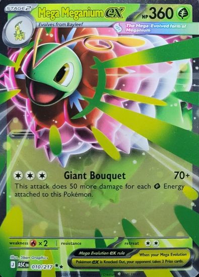 You’ll find that Mega Meganium ex is another simple-to-use damage powerhouse. Its Giant Bouquet attack deals 70 + 50 more for each Grass Energy attached to it. Fortunately, there’s a way to instantly double the amount of Grass Energy attached to it. The regular Meganium has the Wild Growth ability, which makes every Grass Energy attached to your Pokémon provide double the energy. So, just three Grass Energy attached to a Mega Meganium ex affected by Wild Growth will deal 230 damage.