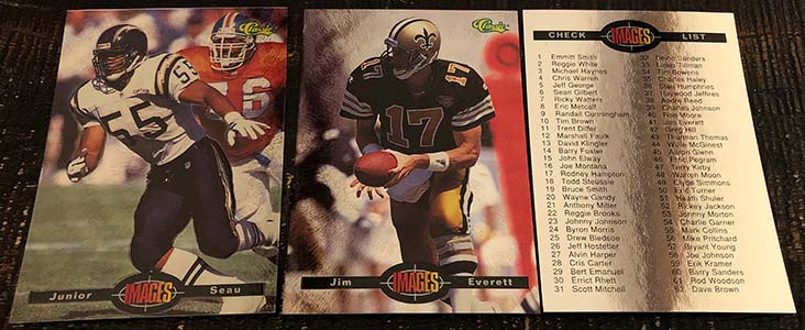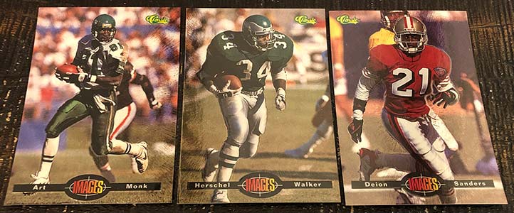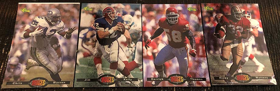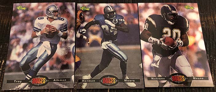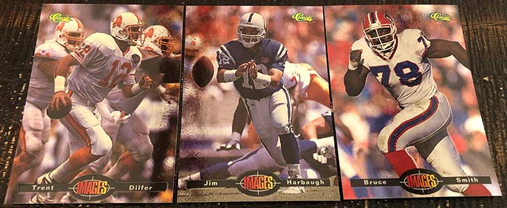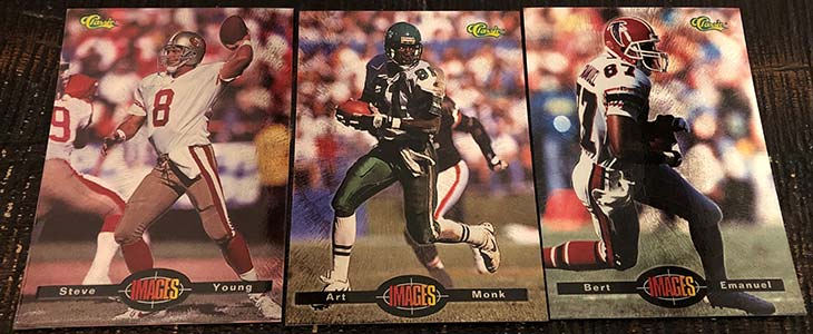 Finally out of the “junk wax” era, companies started looking to create premium products with higher price points. In 1994, Topps released Finest for the first time and Upper Deck’s SP (a 1993 debut product) moved into the premium space. Classic was no different. debuting 1994 Classic Images Football, which they dubbed “NFL’s Super Quality Premium Cards”.