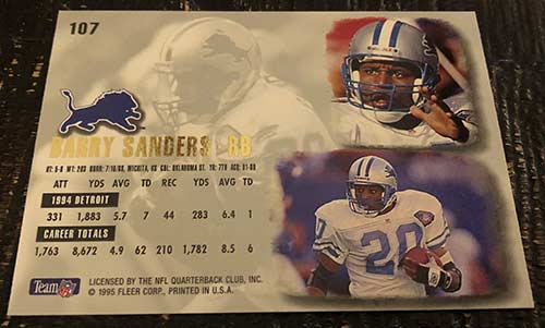 Lastly, the Barry Sanders card back. Even though I prefer to see more stat lines I always found these backs classy. The three additional player pictures doesn’t hurt.
