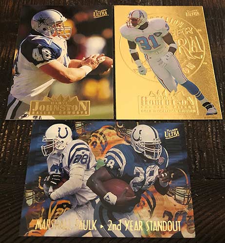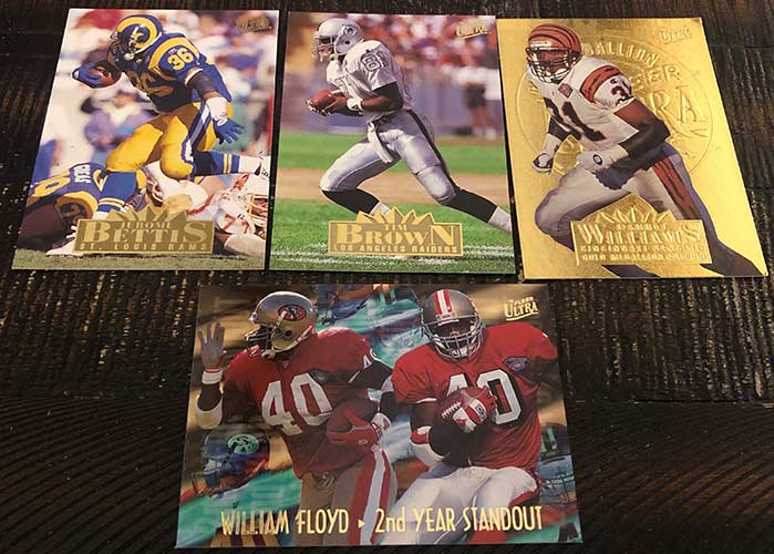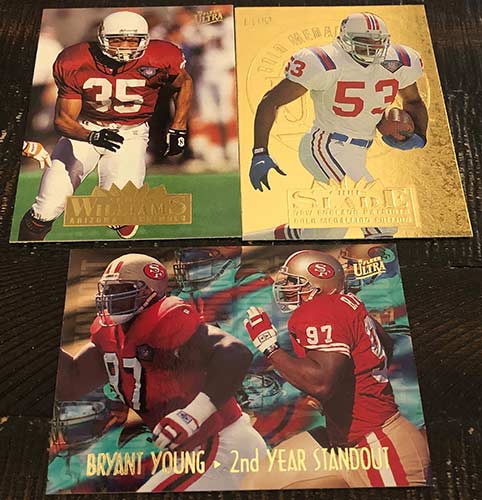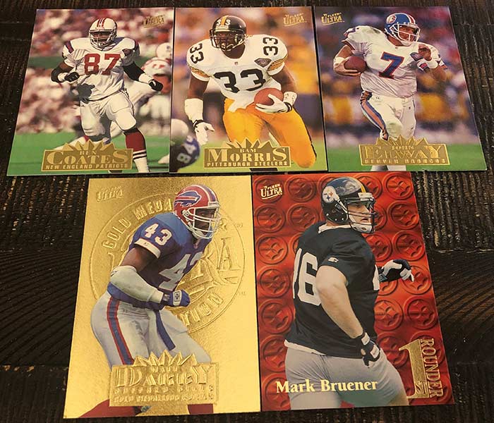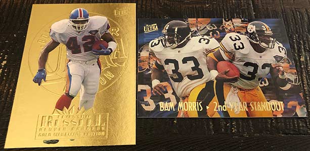 1990s Ultra boxes are always loaded with inserts, and obviously this one was no different. I wish I knew how tough the Gold Medallion insert parallels were, as I found quite a few in this one. The tough Rising Stars Gold Medallion particularly has my interest. Bam Morris definitely isn’t the best of the bunch from the Rising Stars checklist, as Jerome Bettis, Drew Bledsoe, Brett Favre and Marshall Faulk are on the list, but it is still a tough pull.