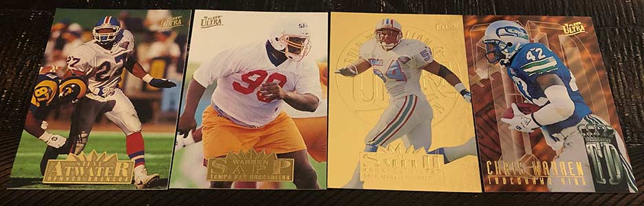 Steve Atwater, Warren Sapp RC, Al Smith Gold Medallion & Chris Warren Touchdown Kings (1:7 packs)
