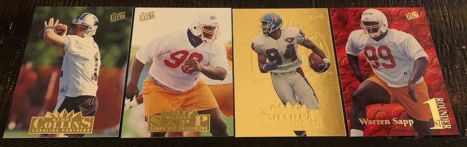 Kerry Collins RC, Warren Sapp RC, Shannon Sharpe Gold Medallion & Warren Sapp 1st Rounders (1:7 packs)