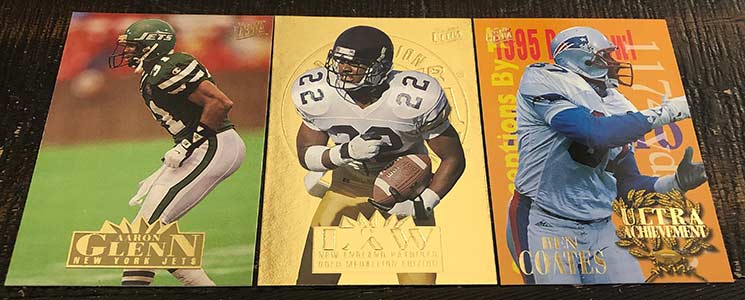 Aaron Glenn, Ty Law Gold Medallion RC & Ben Coates Ultra Achievements (1:7 packs)