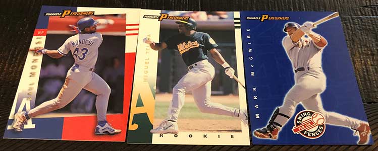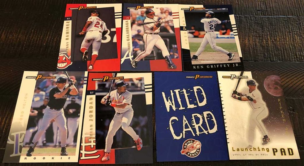 Pinnacle released Pinnacle X-Press for the first time in 1997. With that, they also introduced an “interactive game” called Swing For the Fences. The game required collectors to match AL and NL home run leader Swing For the Fences player cards to their home run total using Swing For the Fences points cards. One can only assume this game came about after the success of Upper Deck’s Crash the Game. Pinnacle X-Press lasted just one release. The product was rebranded in 1998 as Pinnacle Performers.