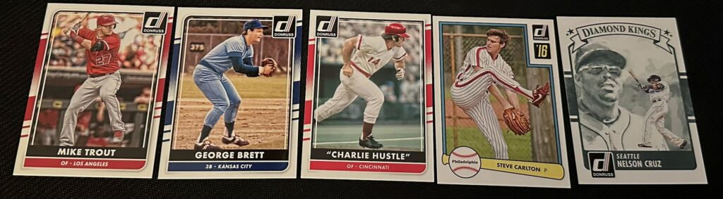 Mike Trout, George Brett, Pete “Charlie Hustle” Rose Nickname Variation, Steve Carlton 1982 and Nelson Cruz DK