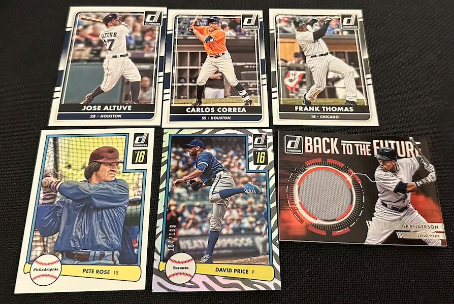 Jose Altuve, Carlos Correa, Frank Thomas, Pete Rose 1982, David Price Holoview Border /199 and Curtis Grandson Back to the Future Jersey Relic