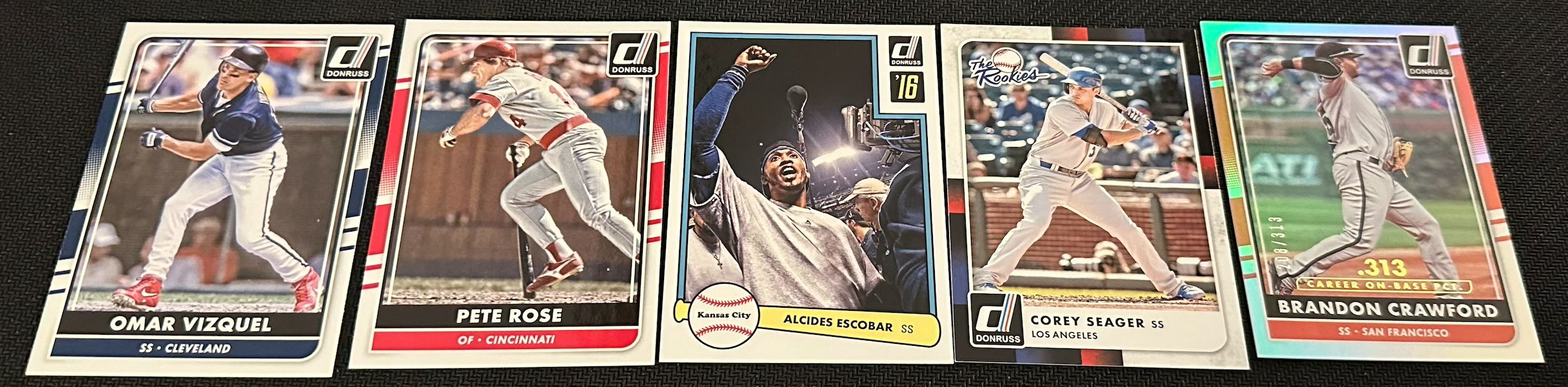 Omar Vizquel, Pete Rose, Alcides Escobar 1982, Corey Seager The Rookies and Brandon Crawford Career Stat Line /313