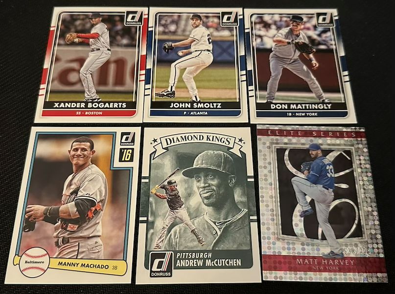 Xander Boagerts, John Smoltz, Don Mattingly, Manny Machado 1982, Andrew McCutchen Diamond Kings (DK) and Matt Harvey Elite Series /999