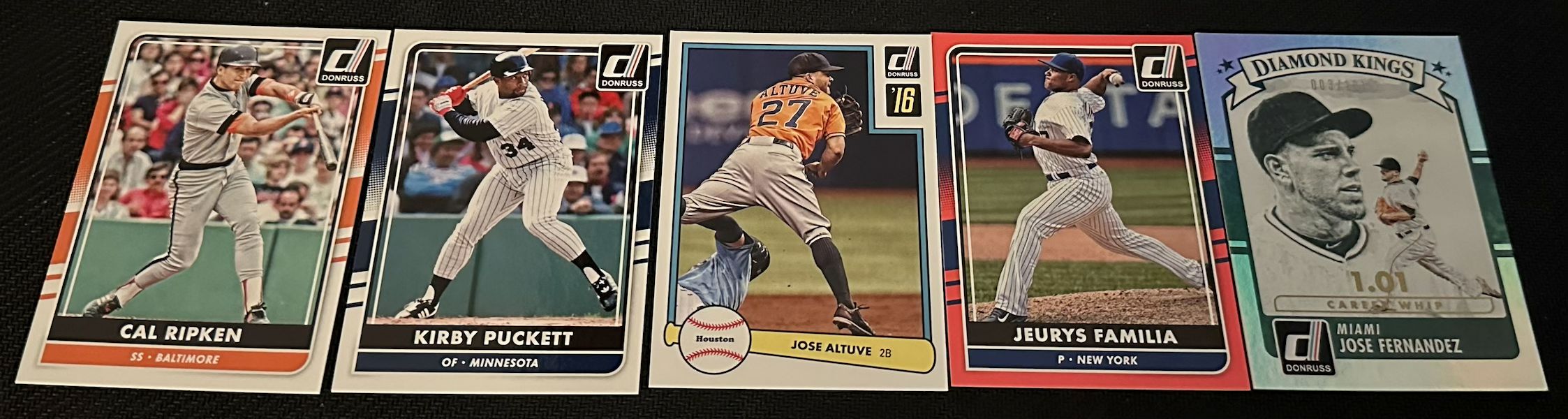 Cal Ripken, Kirby Puckett, Jose Altuve 1982, Jeurys Familia Pink Border and Jose Fernandez DK Career Stat Line /101