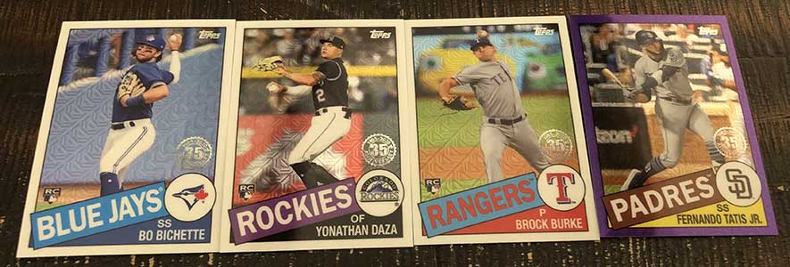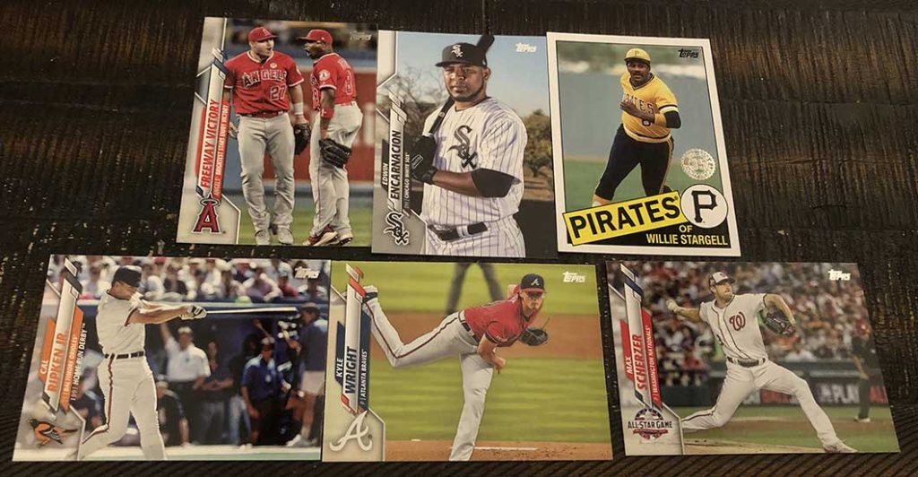 Trout/Upton, Edwin Encarnacion, Willie Stargell 1985 Topps (1:4 packs), Cal Ripken, Jr., Kyle Wright & Max Scherzer