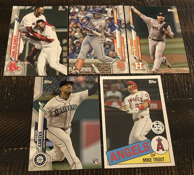 Bogaerts/Devers, Robinson Cano, Justin Verlander, Nestor Cortes RC & Mike Trout 1985 Topps (1:4 packs)
