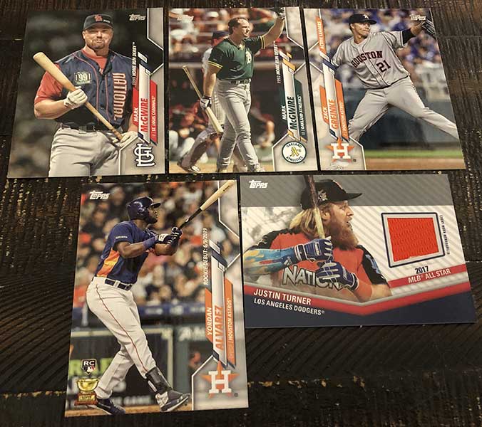 Mark McGwire, McGwire again, Zack Greinke, Yordan Alvarez RC & Justin Turner All-Star Stitches (1:62 packs)