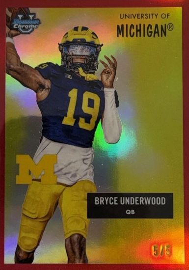 There are 101 2025 Bowman Chrome University Underwood cards listed in the OPG. Cards like his 2025 Bowman Chrome University Acropolis Autographs Superfractors #AABU Bryce Underwood 1/1 have not popped up on sales platforms yet. When they do, based on current card prices, one can expect a big price tag to follow.