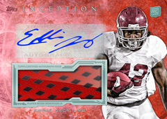 Every base autographed Rookie Card will be signed on card, featuring up to 40 rookies from the NFLPA Rookie Premiere. These RCs will have five levels of parallels with Green (numbered to 99), Purple (numbered to 75), Yellow (numbered to 50), Red (numbered to 25) and Inception (1-of-1).