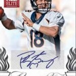 Each box of 2014 Elite Football will contain 20 packs per box with five cards in each pack. Each box will also have four hits per box and three Rookie Cards numbered to 999 in each box.