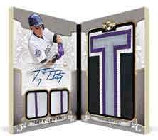 New for this year will be Triple Hits — deluxe cards that have autographs, Relics and a handprint — while Triple Threads Transparencies will have a jumbo Relic and an auto on acetate. Triple Hits will be a redemption because of the size — and limited to 10 — while the Transparencies will be numbered to 25 with a 1/1 Onyx parallel to chase.