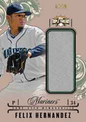 When 2014 Topps Triple Threads arrives in hobby shops on Sept. 10, it will include familiar two pack options per box adopted in recent years. One pack will include three base cards, two parallels, a triple Relic and a Unity single-auto jumbo Relic. The other will have three base cards, two parallels a signed triple Relic and a jumbo Unity Relic. Each will be numbered to 36 or less or 99 or less depending on type.