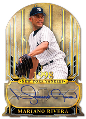 All autographs will be signed on-card for this one with Tribute Autos showcasing veterans and retired stars. These will be found with eight parallels — Green, Orange, Black, Gold (/25), Purple (/10) and 1/1 Red, Onyx and printing plate cards. (The other quantities were not announced.)