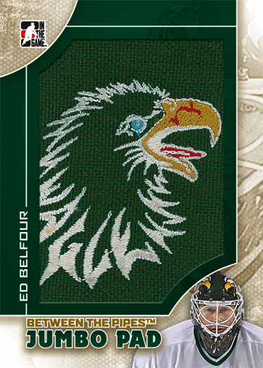 There will be at least four hits in every box based on the odds given. Hits include Authentic Game-Used Memorabilia Cards (1 in 7 packs) and Goaliegraphs (autographs, 1:7). Game-Used Memorabilia hits include players such as Chris Osgood, Ron Hextall, Ed Belfour, Mike Richter and Patrick Roy, based on an early checklist.