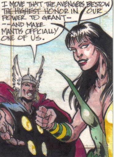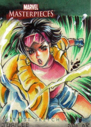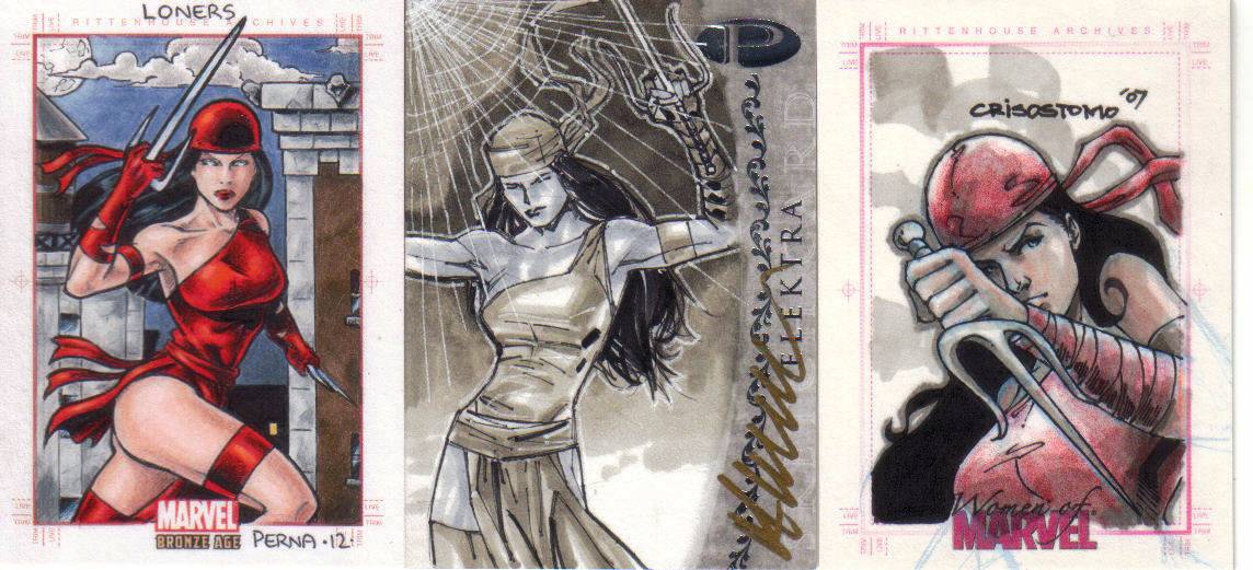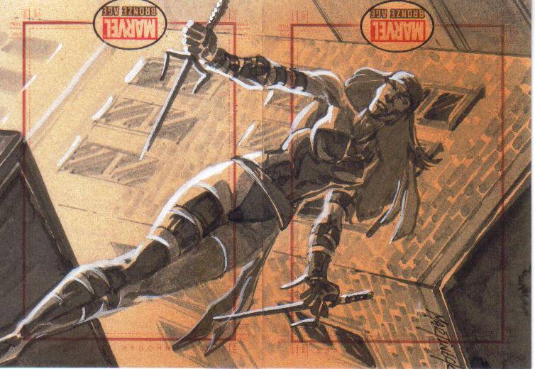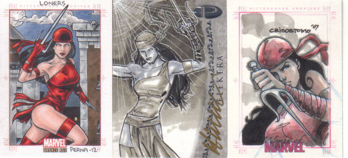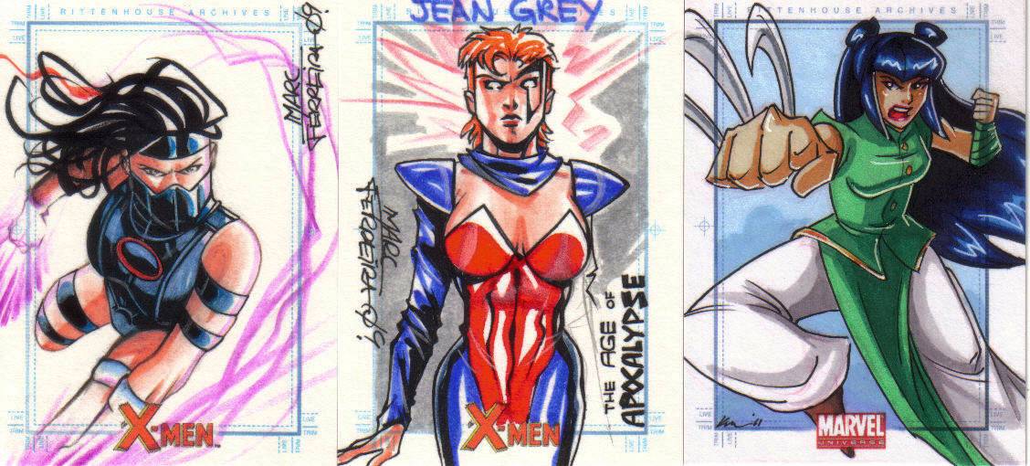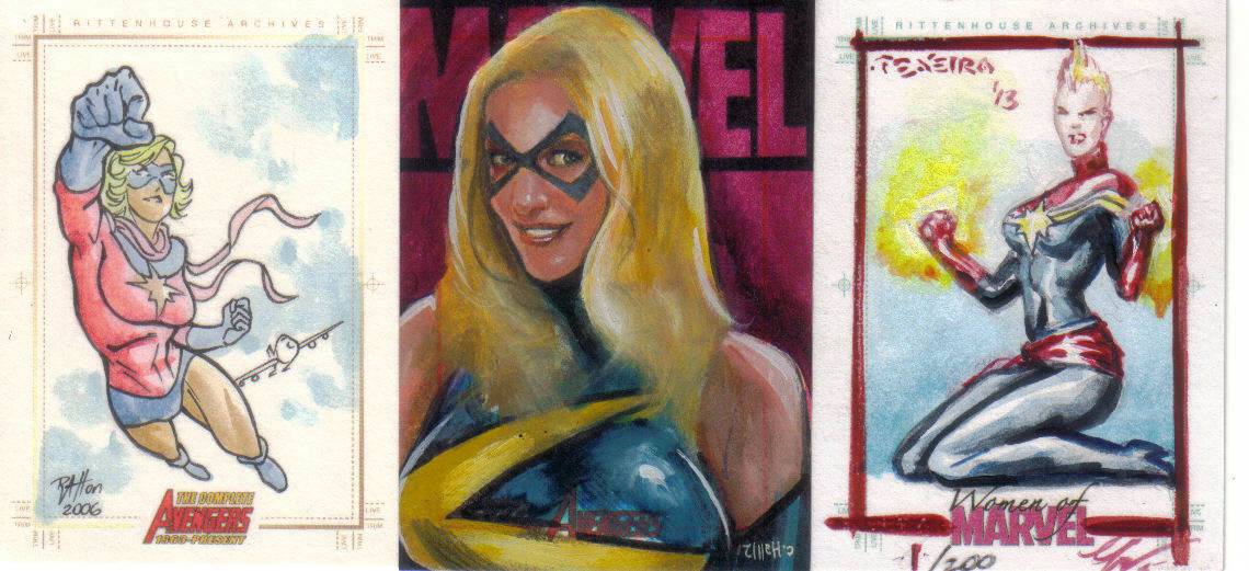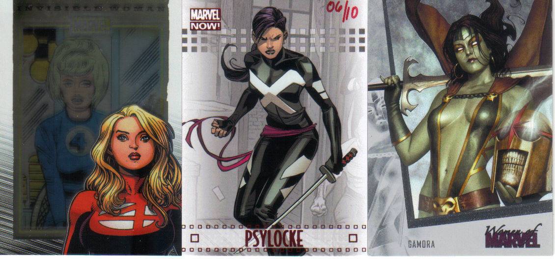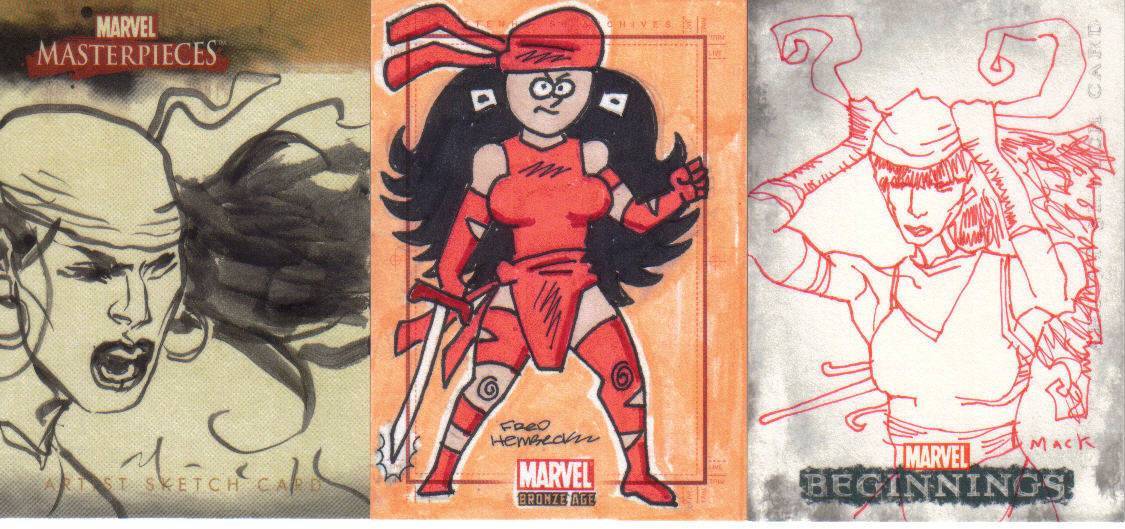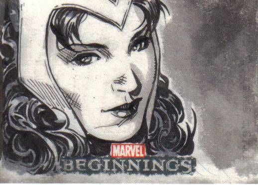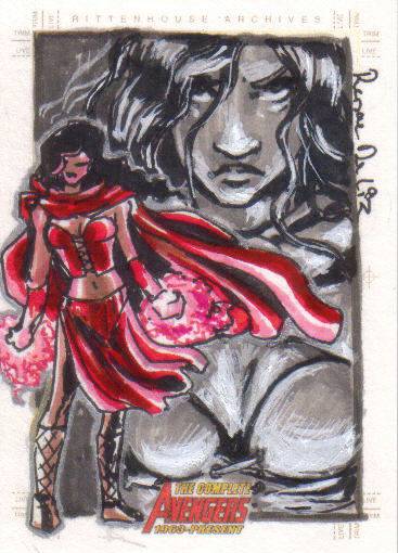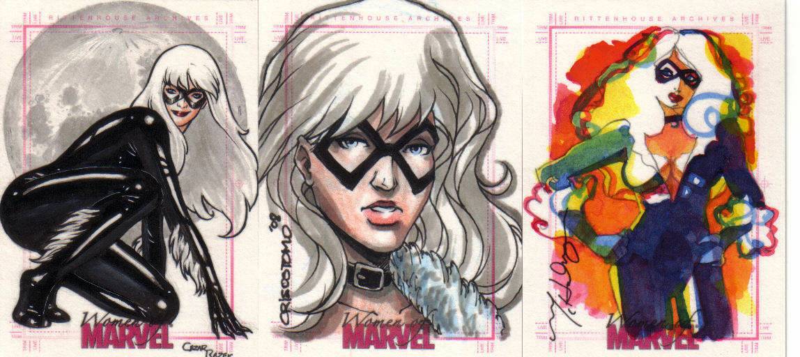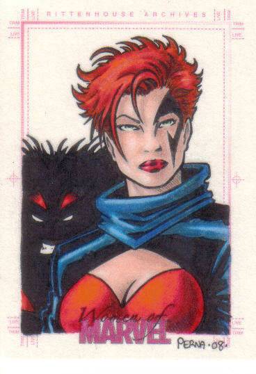 A: Fortunately, just before I found out that we were having our little girl, Rittenhouse released the first “Women of Marvel” series, so the premiums that were associated with many of the female sketch cards from 1998 to 2008 lessened. This has helped me acquire a nice variety of super heroines – 90 different Marvel female characters on pack-inserted sketch cards. To help put that in perspective, the 3 Marvel female-centric sets that Rittenhouse has produced – 2008 Women of Marvel, 2011 Danger Divas, and 2013 Women of Marvel – has had 131 different characters featured on base cards.
