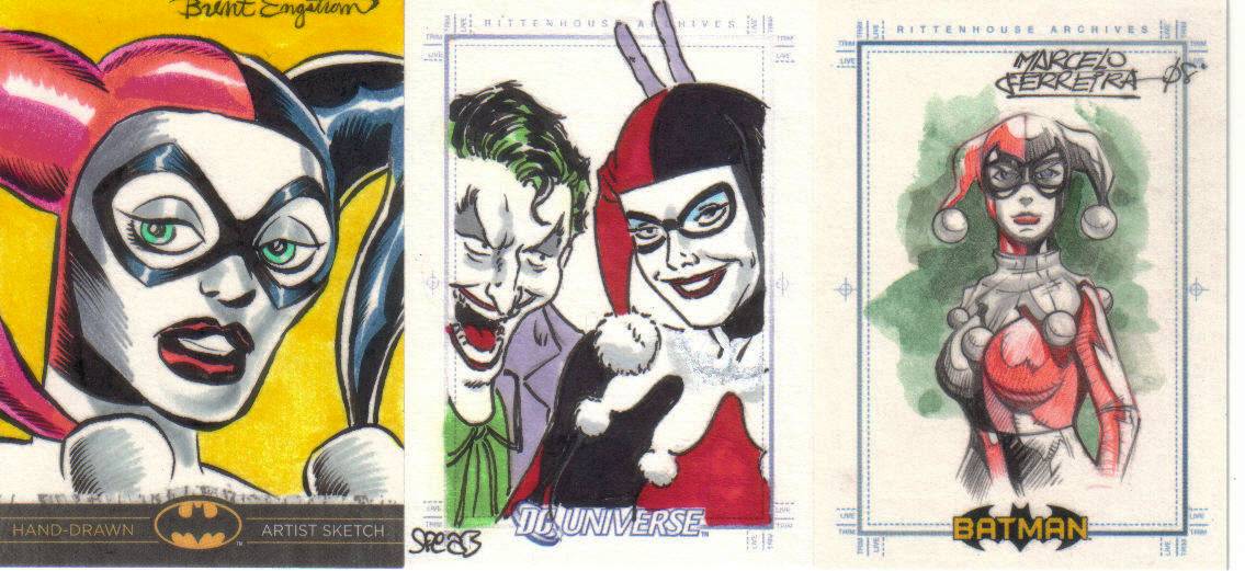 A: My overall Marvel and DC super lady sketch card collection has 105 different female characters spread over 575 pack-inserted sketch cards. Considering that the pack-pulled sketch cards are essentially 1/1 mini-works of art, I think it’s an impressive feat because of the variety of collectors vying for them: artist, character, genre, set, and/or theme collectors.