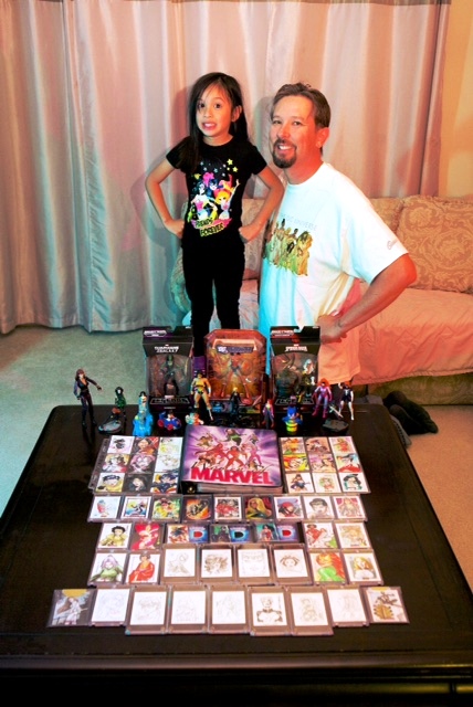 A: What makes this collection truly special for me is the time that we have together as a family “hunting” for these small treasures at card and comic shops, shows, retail stores, and trading with fellow collectors. My daughter is now pretty well versed with most of the super heroes of Marvel and DC Comics (and their alter egos), so she helps me pick out the next sketch card, action figure, or insert card to add to the collection. Most of the time, she picks out the characters that she identifies with – super hero ladies – so the collection that I started because of my daughter still grows by leaps and bounds … just like my little Supergirl.