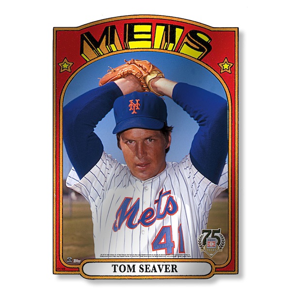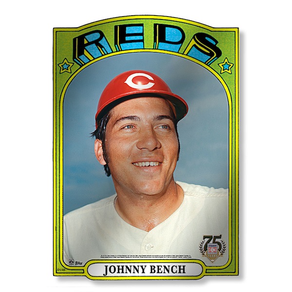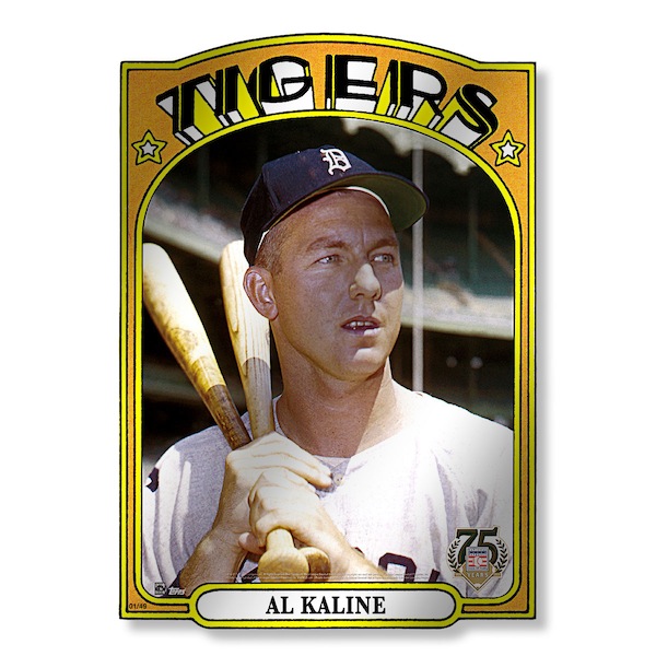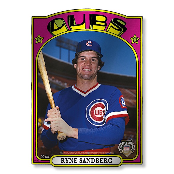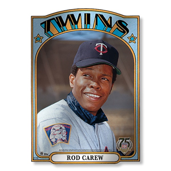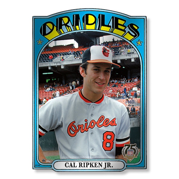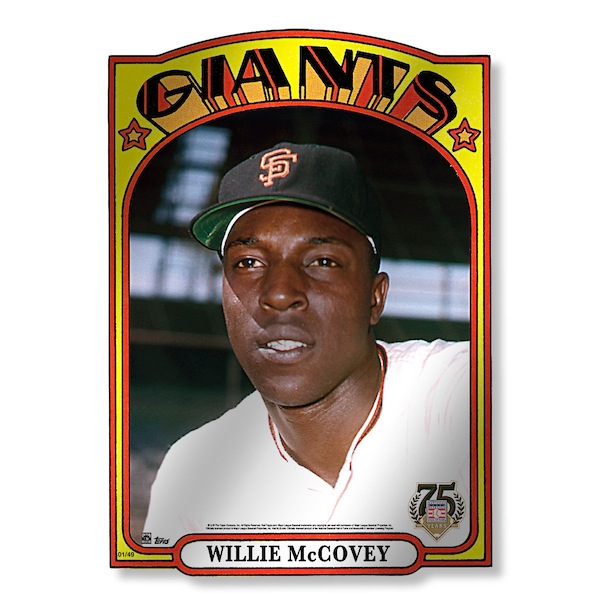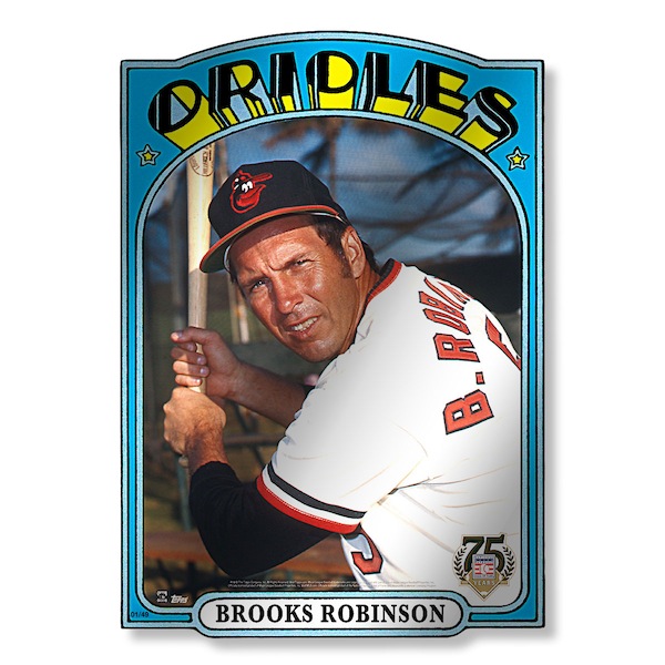 With Sunday’s Baseball Hall of Fame inductions, Topps‘ latest offering of wall art is one that puts the spotlight on 20 of the best players in the history of the game — it’s the Metal Cut Collection. It’s also a first for the new series of online art offerings in that these will come not only printed on metal but also diecut using the style of 1972 Topps — just without the borders.
