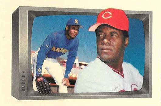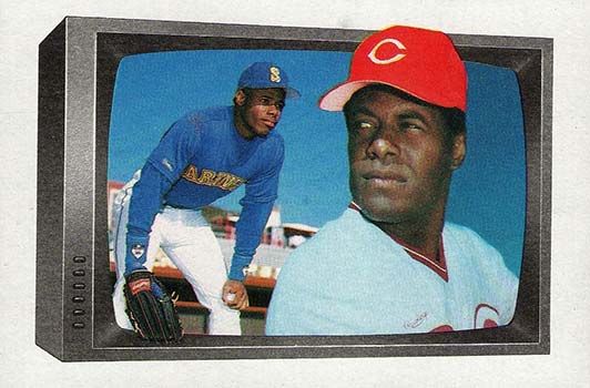 And to think, that box was considered a modern style TV set at the time. Besides the regular Ken Griffey Jr. card, 1989 Bowman Baseball has a separate card picturing the young outfielder with his famous father. It’s one of four cards in the set that highlight MLB-playing fathers and sons. The Ripkens, Stottlemyres and Alomars are also included in the subset.