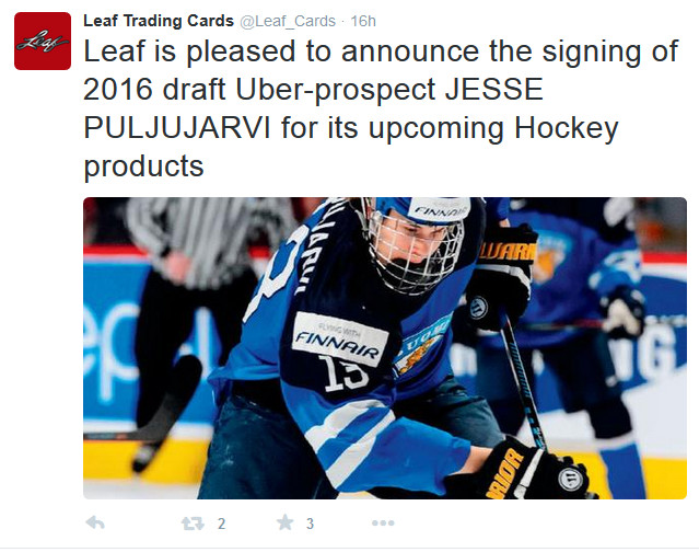 Leaf Trading Cards signs 2016 draft prospect Jesse Puljujarvi