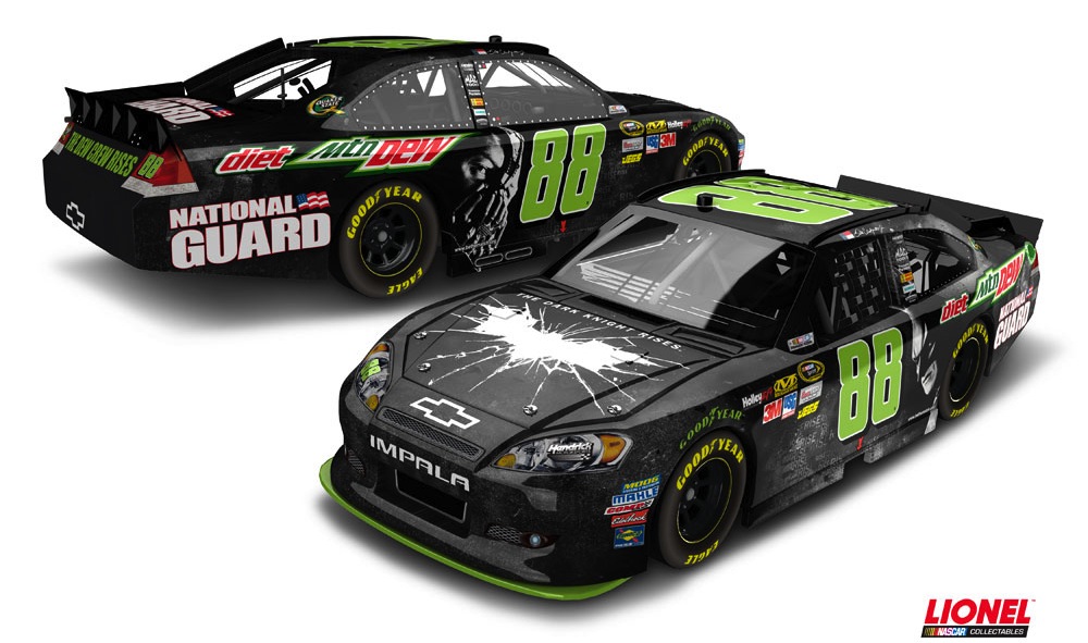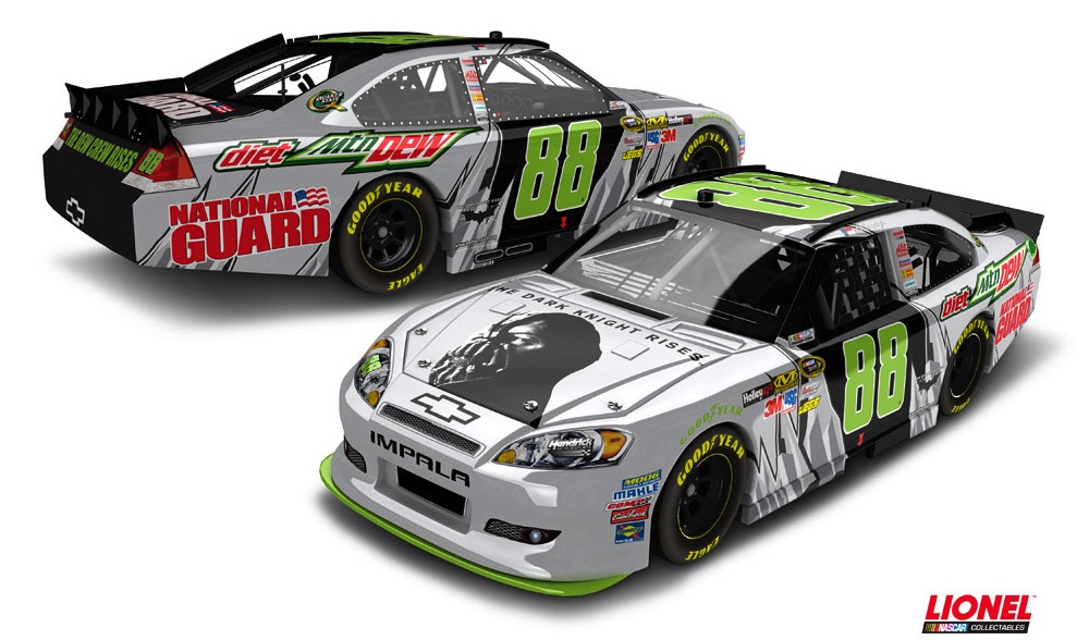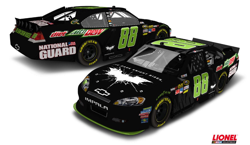 But, together, Dale Earnhardt Jr. and Batman will team up on the track as the son of the seven-time Cup champ will race a Chevy Impala designed with The Dark Knight Rises on its paint scheme.