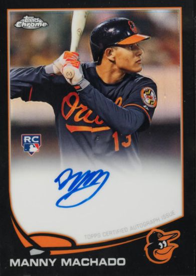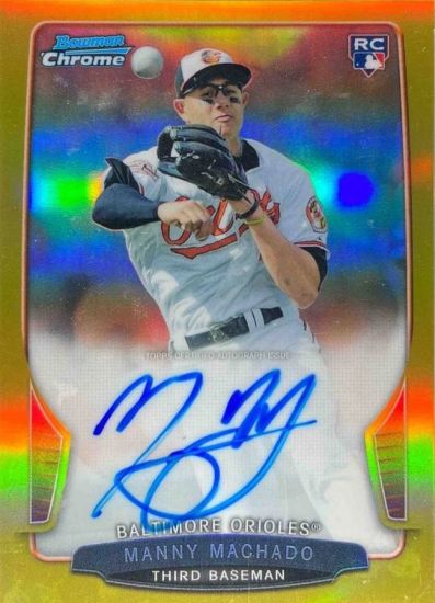 Price wise, the top six Machado cards with known values, per the OPG, are all variations of 2013 Topps Chrome Rookie Autographs #12 with one Bowman Chrome exception. The colors determine the print run, and the scarcity drives the market value. With each of the following three cards listed, expect Mint values to start at $500 going up to $800.
