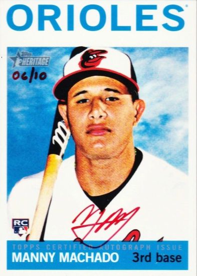 A sidebar to this group, Topps Heritage Real One Autographs #MM Machado Red Ink /10 (pictured). In short, it is very valuable. A graded 10 on eBay is listed for $19,999.99.