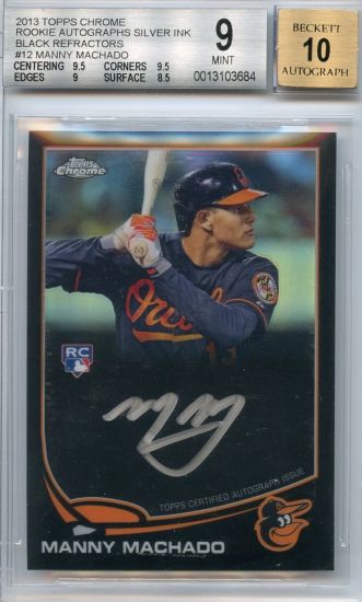 Taking the Bowman Sterling #10 Machado to a Refractor /199 (pictured), the asking price for a BGS graded 9.5 is $174.99.