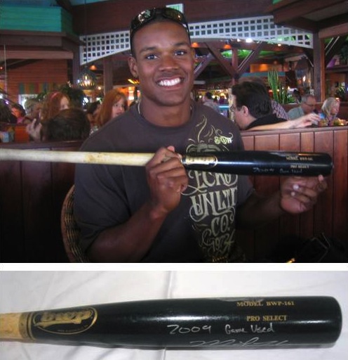 But for other guys, you might find what you’re looking for — some with untoppable authentication. For example, Oakland A’s prospect Michael Taylor is shown above holding the very game-used bat that is for sale now for $225. Tough to beat that kind of proof unless the player hands it to you himself.