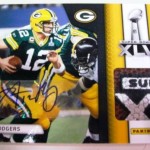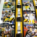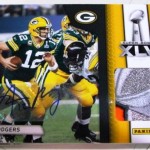 Many of the cards in the set will be centered around Super Bowl MVP and Packers quarterback Aaron Rogers with his autograph and pieces of the pylon embedded in the card.