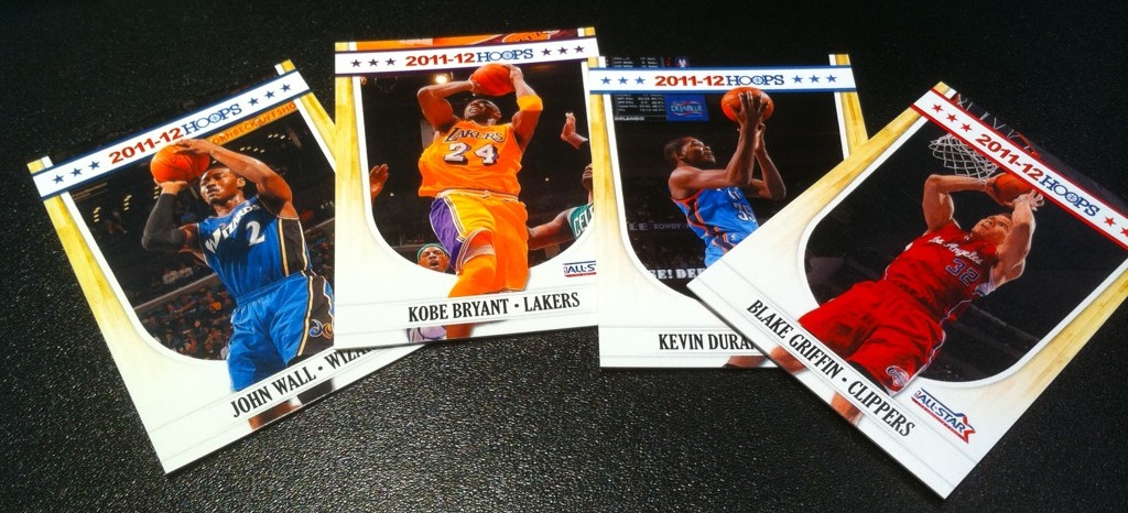 As you can see above, the cards feature three of Panini’s spokesmen — John Wall, Kobe Bryant and Kevin Durant — and a fourth guy you might have heard a little bit about this season, Blake Griffin. (How long until he’s part of the Panini lineup?)