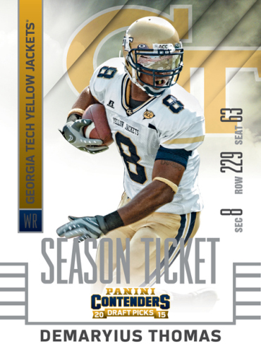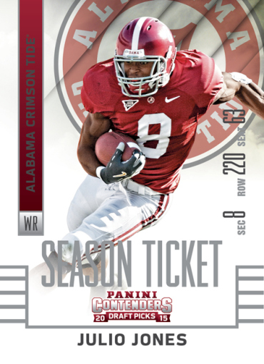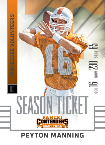 During the 2015 Industry Summit this week in Las Vegas, Panini America announced the upcoming 2015 Contenders Draft Picks football card set. This will be the company’s first licensed collegiate trading card product.